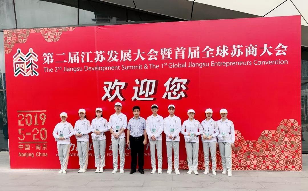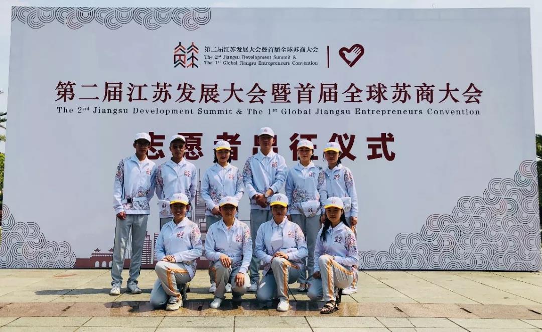 在大会正式开始之前我们对本校的志愿者代表进行了采访,他们一字一句情真意切:“前期培训的时候,在每一次返校的路上,大家都累得睁不开眼,身体也随着汽车在左右摆动,不时会有同学的东西“啪”的一声掉落下来,大家都被惊醒了,还没过一秒又都进入了梦乡。但是我们认为能代表金审出征,为江苏的发展出力,再苦再难也值得,因为我们是1196名大学生志愿者的一份子,因为我们是小流苏!”
