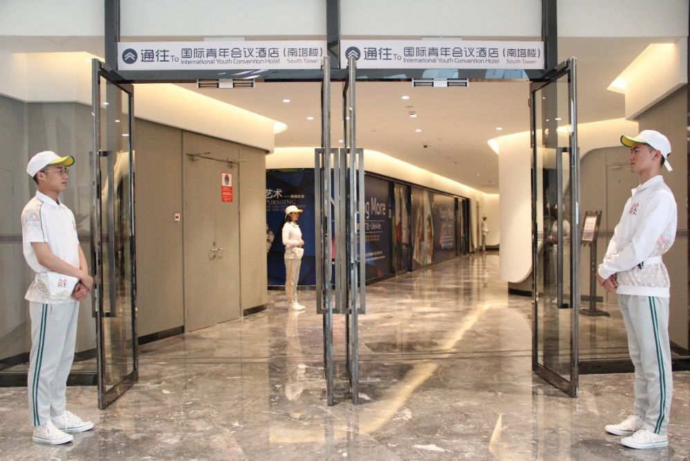 出征仪式结束后,所有的“小流苏”立刻奔赴自己的工作岗位。5月10日至5月19日,我校带队老师和10名志愿者同学前后于南京国际青年酒店进行了7次实地模拟彩排。早在之前的培训中大家就了解到国青酒店结构复杂,且每位志愿者的工作岗位并不固定,一天甚至要在不同的岗位进行轮岗,但是他们并没有因此而畏惧。