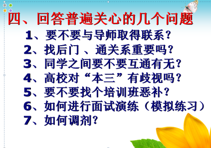 培训会上,尹校长从当前考研复试形势、个性化备战、线上线下面试技巧、学校调剂原则等方面详细帮助应考同学指明了复试准备方向。此外,尹校长还重点介绍了如何制定考研复试计划、考研复试必备网站、考研复试中专业知识、实践操作等内容的准备,叮嘱复试同学保持低调谦虚、积极认真严谨的求学态度,以及如何向师兄师姐交流复试的经验等。