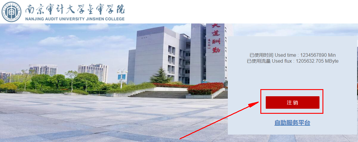 方法二:您也可以使用对应无感知的终端访问认证登录页面http://10.255.255.154,会自动跳转至注销页面,点击“注销”按钮,在弹出注销并解绑MAC提示后点击确认即可取消无感知并同时下线该终端(如图2)。