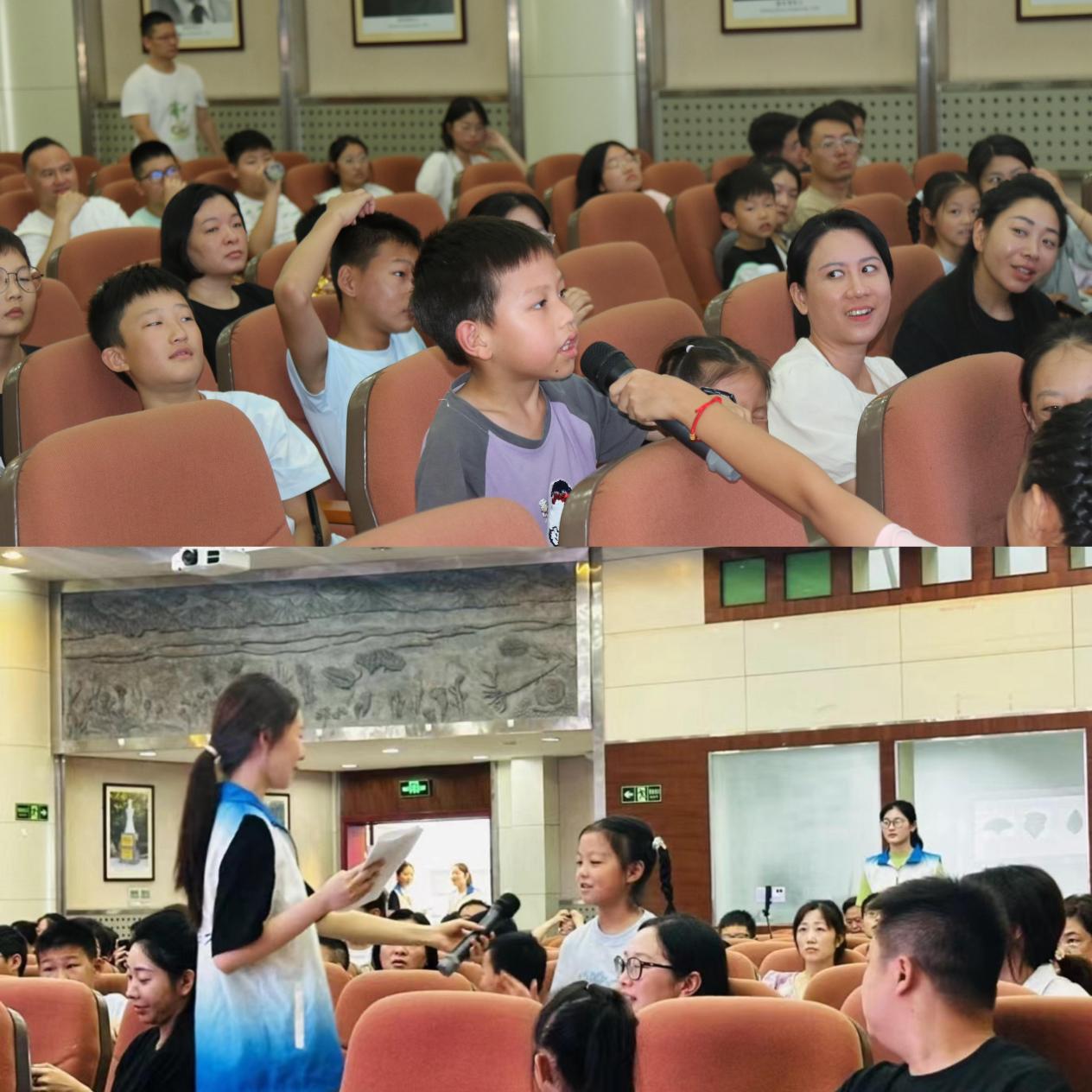 “微笑”志愿服务队成员在南京古生物博物馆的微体古生物特色展厅开展了为期11天的筹备收集素材和讲座彩排工作,并于2024年7月17日在南古馆会议厅开展微体古生物的科普宣讲。科普宣讲活动中,志愿者们巧妙地将趣味盎然的游戏问答与科普知识相结合,吸引孩子们的注意力,引得现场的“小神探”忙不迭地举手回答,营造出浓厚的学习氛围。