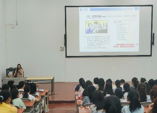 讲座的伊始,许老师和王老师从消防安全、财物安全、校外安全、人身安全四个方面,通过列举真实案例进行讲解,提醒同学们要提升安全意识、培育安全素养、强化自保能力。
