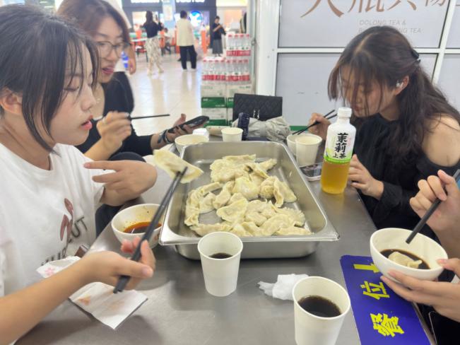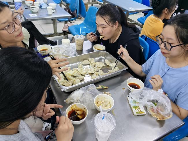 玉衣裹起撑船肚,沸水催熟腹中珍。一盘盘热腾腾的饺子缓解了一周军训的疲惫,温暖着每一个学生的心,品尝自己亲手包的饺子,分享劳动的喜悦,感受节日的氛围。