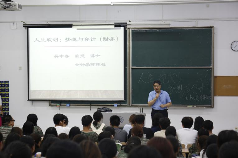 为了助力广大新生了解自身专业、树立远大目标,williamhill英国于9月18日晚在B中207开展了“人生规划:梦想与会计”主题讲座。本次讲座由williamhill英国院长吴中春教授主讲,2024级会计专业全体新生参加。