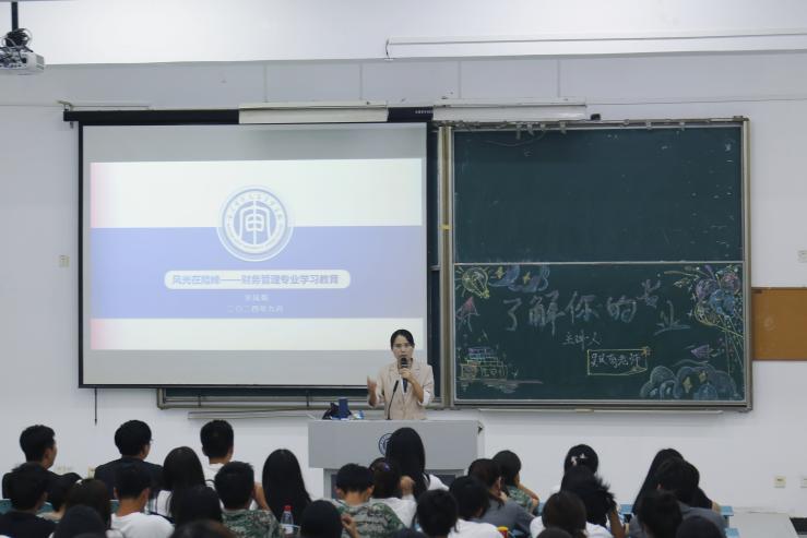 吴主任从人才培养、师资队伍、实践教学、专业特色几个角度出发,将财务管理专业的学业规划和就业前景娓娓道来。她鼓励同学们在今后的学习生活中时刻以高标准要求自己,为将来成为专业人才打下坚实基础。