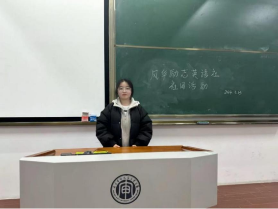 在大一期间她担任风华英语励志社办公室干事,协助组长完成统计英语大赛的人数、全国英语大赛的监考以及社团的各项活动。