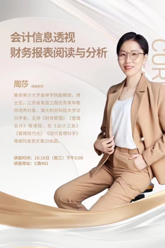 讲座伊始,周莎副教授以其深厚的专业知识和丰富的实践经验,深入浅出地阐述了会计信息在现代企业管理中的核心地位。她指出,财务报表就像是企业的“体检报告”,而会计信息则是解读这份报告的关键密码。通过准确的会计信息,能够深入透视财务报表背后隐藏的企业经营状况、财务健康程度以及未来发展趋势。