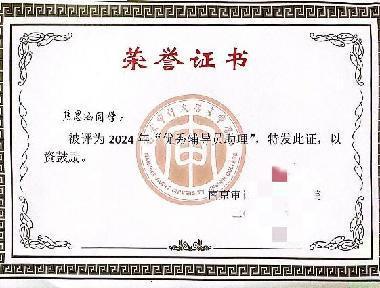 2024年9月担任2024级财管4班新生辅导员助理,并获得优秀辅导员助理。任职期间,始终坚守岗位,怀揣热忱与责任,为新生们排忧解难、指引方向,帮助新生尽快适应大学生活。