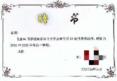 同时,也积极投身于学术研究,参加大学生创新创业训练项目。2023年主持了一项校级大创《新时代中华优秀传统文化在城市社区传播研究——以南京白局为例》,并成功结项,2024年主持申请了一项省级大创《“一带一路”倡议下企业国际化对ESG表现的研究》。