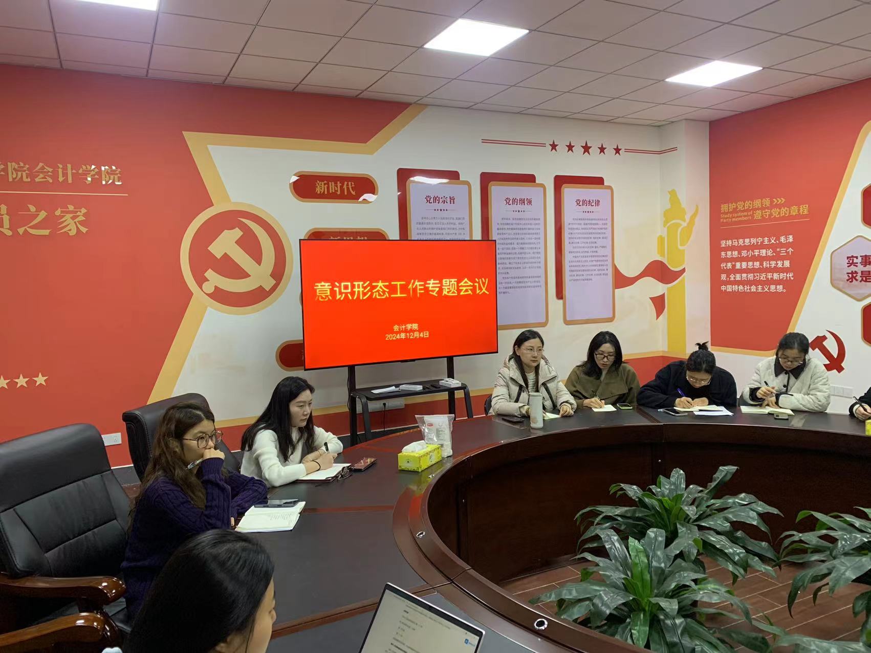 党总支书记于璐在会议中指出,意识形态工作是党的一项极端重要的工作,高校作为意识形态工作的前沿阵地,肩负着为党育人、为国育才的重大使命。全体教师应深刻认识意识形态工作的重要性,增强责任感与使命感。一方面,要大力加强教师队伍思想政治建设,提高教师政治素养和思想觉悟,树立正确的世界观、人生观和价值观。另一方面,严格落实课程思政要求,强化课堂教学管理,确保各类课程与思想政治理论课同向同行,发挥协同效应。同时,高度关注学生思想政治教育,把握学生思想动态和心理健康,引导学生树立正确理想信念和价值取向。此外,各部门要紧密配合,加强对学院新媒体平台和学术活动的管理,防止不良思想渗透,共同筑牢意识形态阵地。