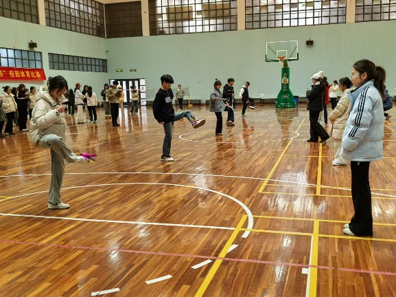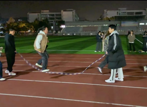 冬季校园寒风凛冽,参与拔河、跳绳和踢毽子比赛的同学们,利用晚自习的课余时间开展训练。他们无畏寒风侵袭,在操场上全情投入。拔河队伍喊着响亮的口号,齐心协力地练习发力技巧;跳绳选手身轻如燕,不断挑战更快的速度;踢毽子的同学则专注于每一次起脚,力求动作精准稳定。每一个人都在为即将到来的比赛挥洒汗水,奋力拼搏。