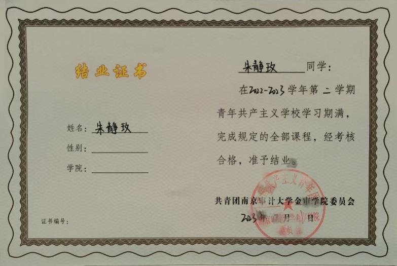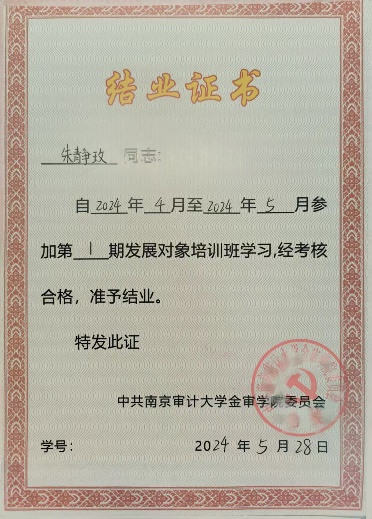 她政治上要求进步,在思想与行动的征程中,时刻严于律己,以高标准规范言行,在日常中磨砺意志、雕琢品性。她坚持学习党的路线方针政策,积极向党组织靠拢,将党的先进理念奉为圭臬,在党的光辉照耀下坚定信念,努力使自己成为有担当、有抱负的新时代追光者,用汗水与热情书写青春篇章。目前,她已顺利通过青共校和党校的培训,不断向一名真正的共产党员迈步。