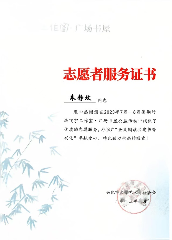 在校期间,她踊跃参与班级和部门组织的志愿活动。假期里,她投身“三下乡”社会实践活动;担任兴化市昭阳街道校外教育中心辅导站“日新青仔公益”暑托班辅导老师;参与“毕飞宇工作室·广场书屋”志愿服务。此外,还连续两年坚持返乡招生。她以实际行动为学校和社会贡献力量,在实践中感悟世间真情,展现出当代大学生的责任与担当。