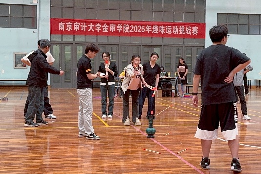 投壶比赛现场气氛活跃,各队选手沉着冷静,瞄准、投掷动作标准规范。呼啦圈传递项目中,参赛团队手牵着手心连着心,齐心协力,克服困难展现出良好的团队协作精神。