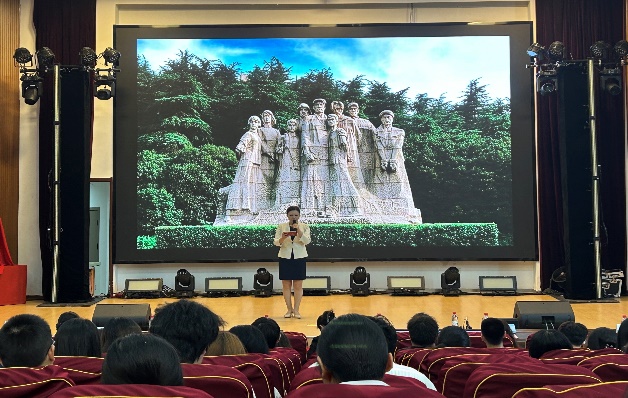 宣讲活动在沉浸式短片中拉开帷幕。宣讲团成员以信仰的力量为主题,深情讲述五位英烈的感人事迹:南泥湾拓荒者刘亚生烈士在狱中坚守信仰的钢铁意志;“黎明前的血衣”背后革命伉俪的生死绝恋;艺术家赵良璋烈士“左手持枪、右手执笔”的革命浪漫主义;白丁香烈士为保护战友慷慨赴义的巾帼豪情;孙小梅烈士投身解放事业的青春壮歌。宣讲者以多个人称视角叙事,配合历史图片与场景还原,带领师生重返烽火连天的革命岁月。