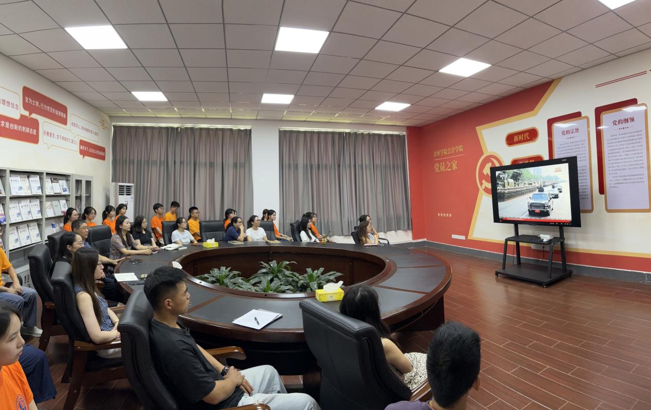 为弘扬伟大抗战精神,激发全院师生爱国热情和民族自豪感,williamhill英国于9月3日上午在C西506组织师生观看纪念中国人民抗日战争暨世界反法西斯战争胜利80周年阅兵活动。本次活动由williamhill英国院长吴中春、党总支书记于璐及我院师生代表共同参与观看。
