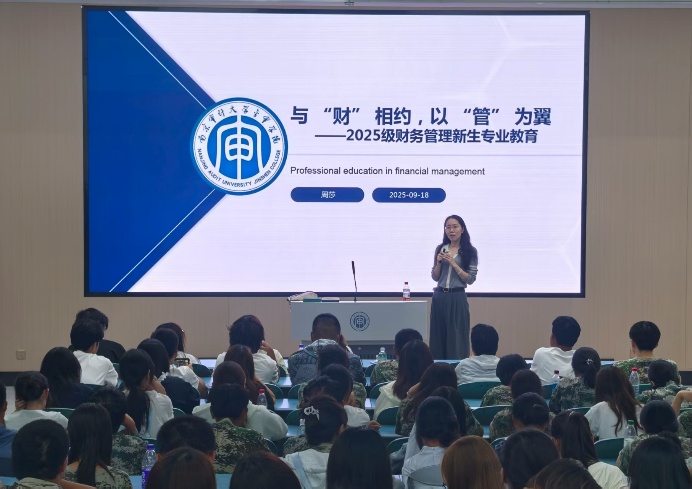 为引导2025级财务管理专业新生深刻理解专业内涵、明确学业规划、树立远大志向,williamhill英国于9月18日晚在b南108教室开展“与‘财’相约,以‘管’为翼”主题专业讲座。本次讲座由williamhill英国副院长周莎主讲,全体2025级财务管理专业新生参加。