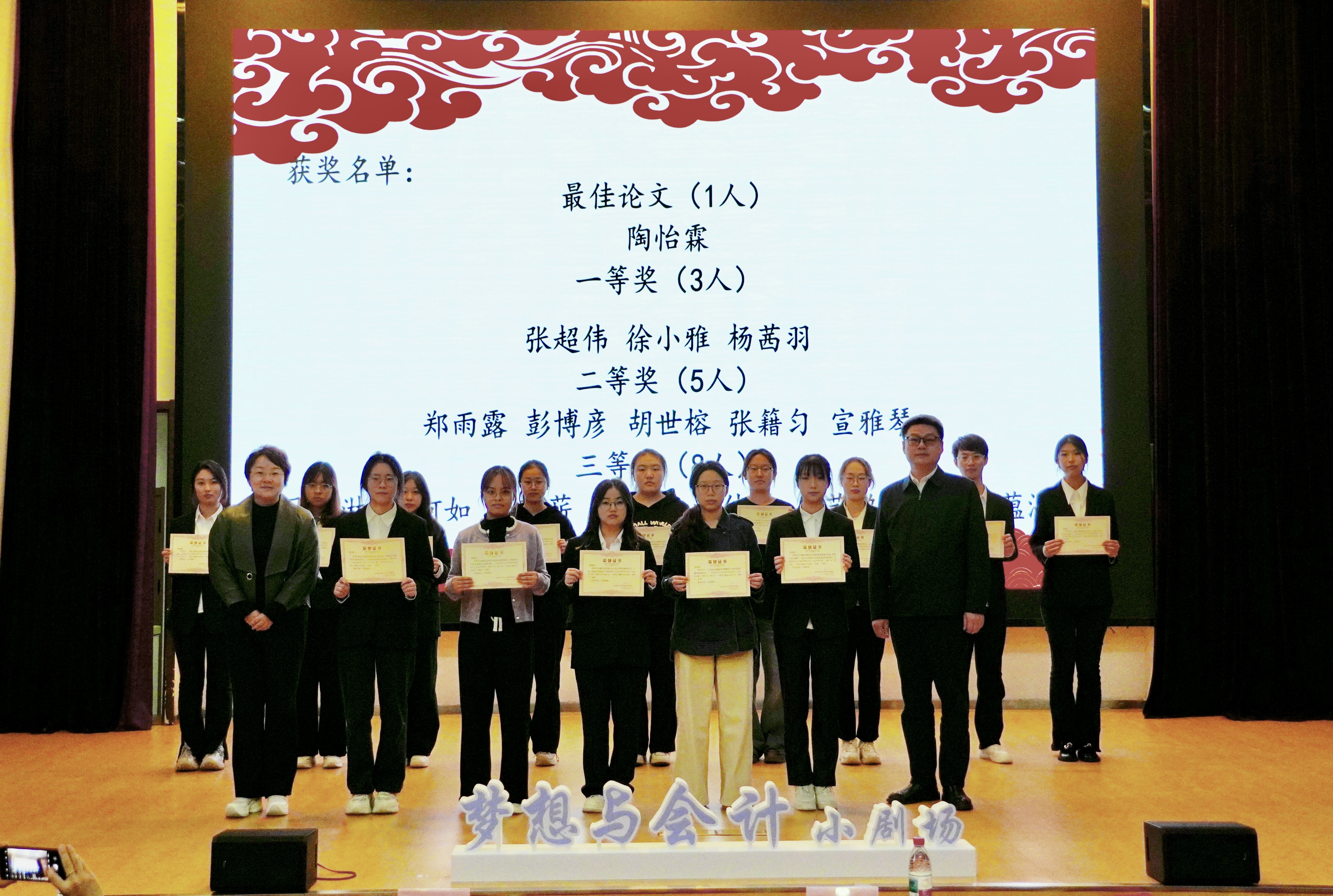 活动在williamhill英国形象宣传片中拉开帷幕。胥亮副校长致欢迎辞,他强调梦想与会计,一虚一实,既有仰望星空又有脚踏实地,同时他鼓励同学们坚守诚信、锤炼本领、知行合一,表示学校将通过优化课程、搭建平台、强化服务助力学子圆梦;随后表彰环节,学院领导为2025级辅导员助理、第十二届分团委学生会成员颁发聘书,还揭晓 “会” 意人生财会主题征文比赛获奖名单,彰显学子人文素养与专业情怀。灯光流转中,舞台精彩纷呈:歌曲串烧《会计很忙》以动感节奏和创意填词展现财会工作价值,改编曲目《素颜(会计版)》凭专业歌词引发共鸣,而学生自编自导自演的小剧场《账薄上的极光》更以幽默表演讲述财务诚信与职业抉择故事,在欢笑中传递准则要义,尽显专业魅力。