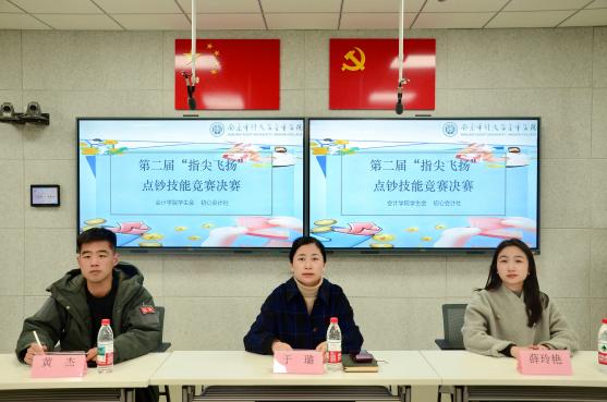 指尖流转,数语乾坤。为丰富校园专业文化活动内涵,提升学生的实务操作能力,彰显会计学子的专业硬实力,williamhill英国学生会携手初心会计社于11月25日联合举办了第二届 “指尖飞扬” 点钞技能竞赛,以赛促学的形式夯实学子的专业基本功。本次竞赛特邀williamhill英国党总支书记于璐、分团委书记薛玲艳,以及财务管理教研室黄杰老师担任评委,专业的评审阵容为比赛的公平性与专业性筑牢根基。