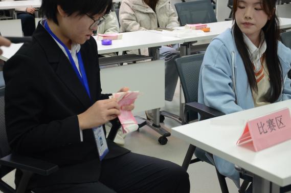 此次竞赛主要从速度、准确率及操作规范性三个方面对参赛者进行综合考核。比赛中,选手们沉着应对,于指间翻动中展现出扎实的专业功底;裁判组严格遵循行业标准,确保评分过程的客观性与公正性。虽无华丽的舞台,却见证了青春热情与金融技能的精彩碰撞;虽无炫目的特效,却呈现了指尖飞舞间的专注与速度。同学们在这场手动操作的较量中,每一秒都充满了紧张感与精彩瞬间。