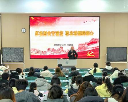 为深入传承红色金融基因,厚植财会专业学子职业道德根基,引导青年学子牢固树立诚信执业理念,williamhill英国于1217日下午,在B109教室隆重举办红色财经专题讲座。本次讲座特邀南京林业大学经济管理学院副院长邓德强教授担任主讲嘉宾,围绕“财会诚信与职业道德”核心主题展开深度分享,与现场师生共同探寻红色财经精神的时代内涵,擘画新时代财会人践行职业操守的实践路径。