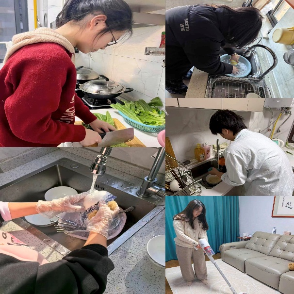 家务践行:躬身劳作,于烟火人间体悟责任担当。学子们主动承担洗碗烹煮、整理收纳、照料长辈等家务,从专注学业的学习者,转变为主动担当的家庭责任人。大家将会计专业的分类思维与规整意识运用到家居整理中,在朝夕陪伴中读懂责任内涵,以点滴家务传递孝心与温情,在默默付出中收获成长与蜕变。