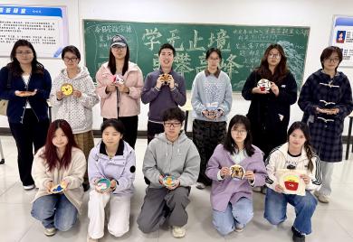 现场布置清新温柔、氛围感拉满:娇艳的郁金香错落点缀,暖黄灯光轻洒全场,搭配舒缓悠扬的背景音乐,让人一踏入便卸下平日的紧绷与疲惫。结合学生需求,学院精心筹备了DIY掐丝珐琅杯垫与戳戳毛线杯垫两大特色手作项目,兼顾文化传承与解压疗愈双重属性,满足不同同学的创作偏好。